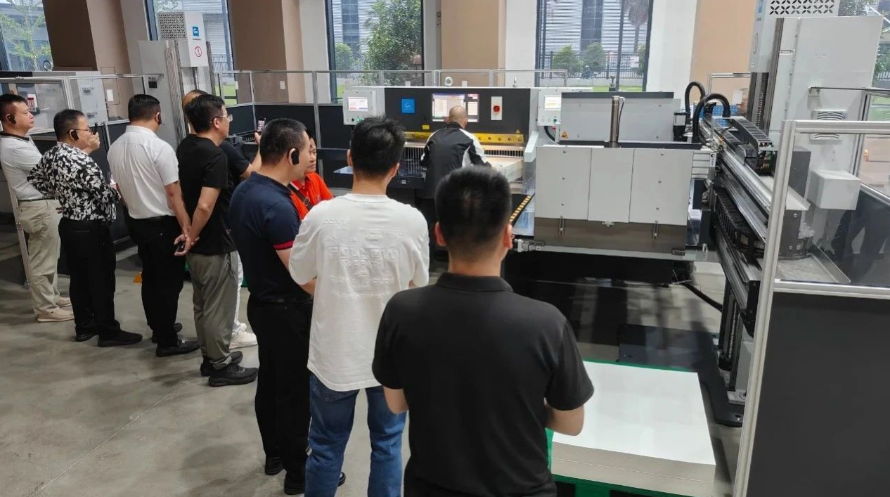 隨后,晉江市印刷行業(yè)協(xié)會的貴賓參觀了國望集團的加工中心、檢測中心、產(chǎn)品生產(chǎn)組裝線等,對國望現(xiàn)場管理、智能制造技術(shù)和產(chǎn)品品質(zhì)把控表示高度贊賞。