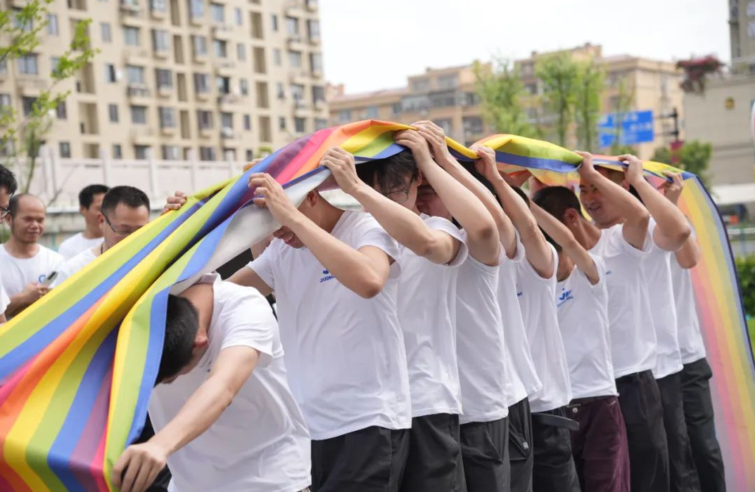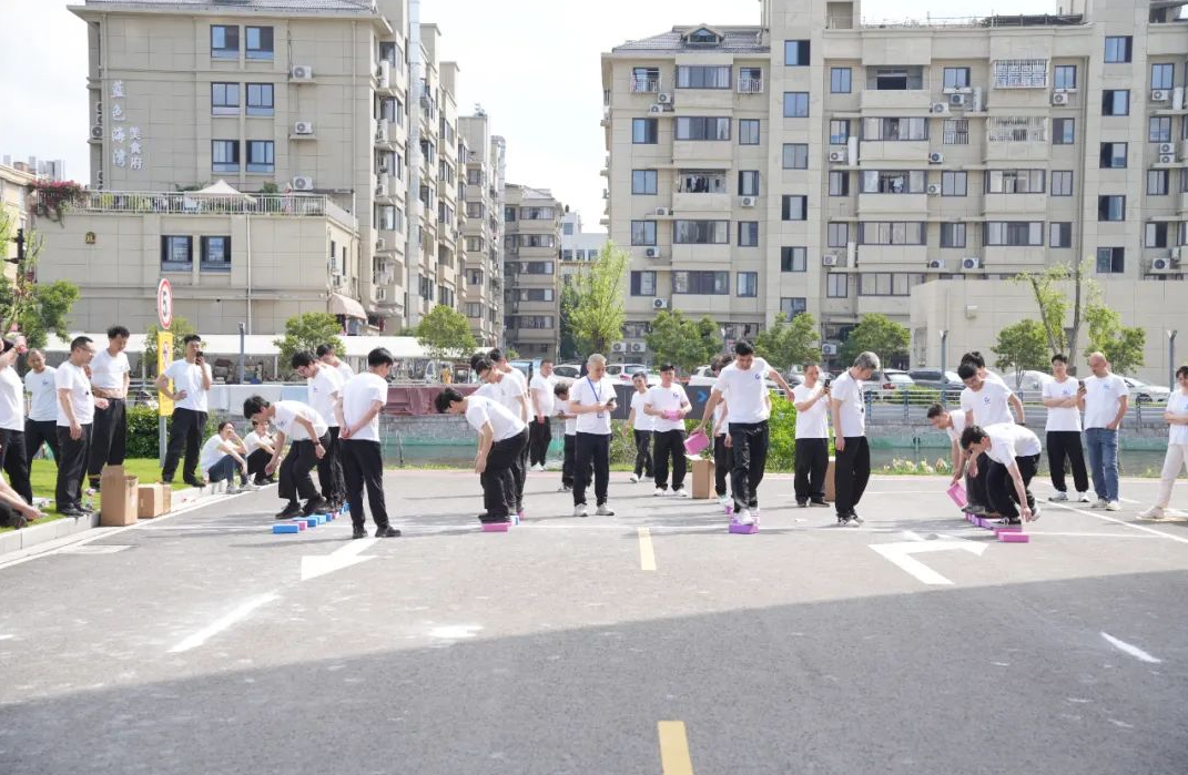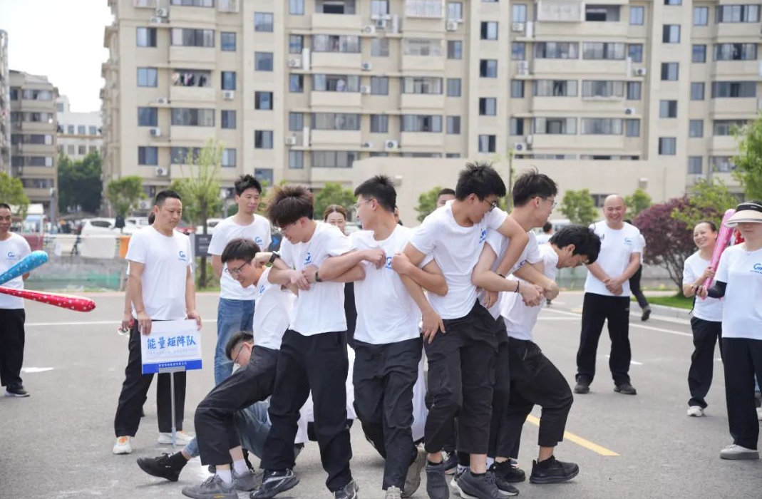 在 “坐地起身” 項(xiàng)目中,隊(duì)員們緊密相依,彼此扶持,憑借著巧妙的配合和堅(jiān)韌的毅力,一次次挑戰(zhàn)起身的速度與默契度。大家相互鼓勵(lì),笑聲與呼喊聲交織在一起。